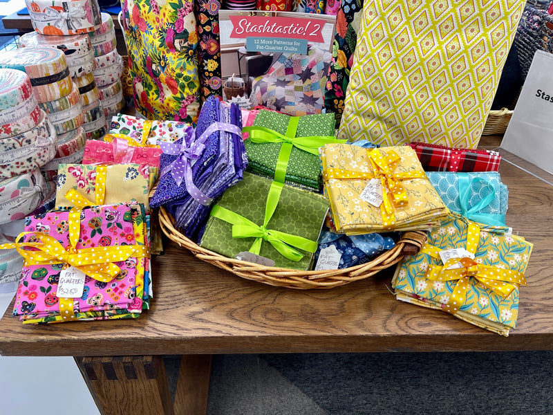 We're gearing up for Shop Hop! We have these great fat quarter bundles - 8 fat quarters for $20. Or our newer Dear Stella line - 10 fat quarters for $32.50.