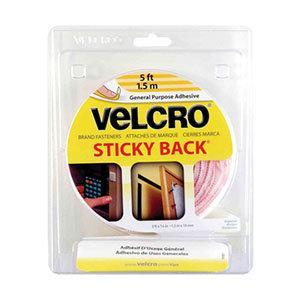 Press-on fastener delivers strong holding power. Simple peel and stick application. For smooth surfaces such as painted wallboard glass metal and most plastics. Size 3/4inx5 ft roll. White.