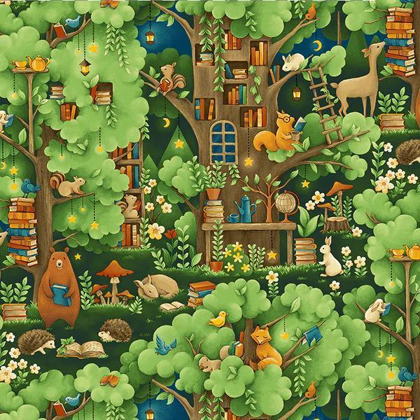 From Paintbrush studios a cozy and whimsical fabric collection features delightful woodland creatures, sparkling stars and lanterns, and piles of books. 100% cotton Style # : 120-9614