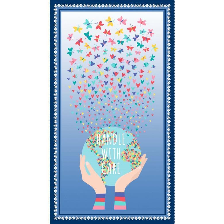 Handle with Care is a friendly reminder to cherish and care for Earth and the solar system. This 15-piece collection uses hearts, butterflies and flowers to express how delicate our planet is. The beautiful panel shows that the fate of the earth is in our hands. The “Spread the Love” border print is perfect for dresses and décor!