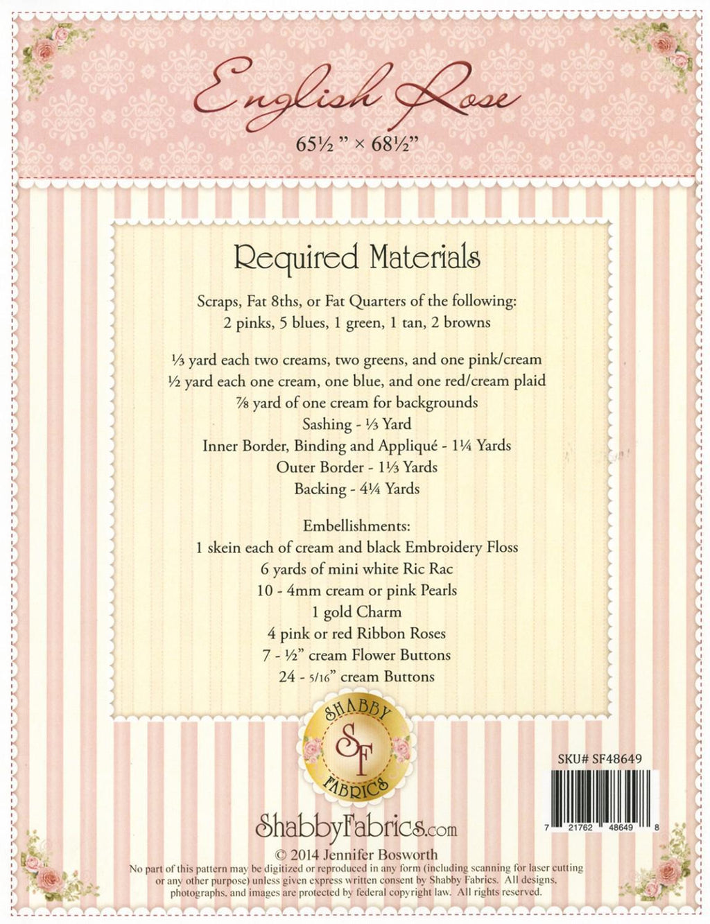 Spread the charm of an English rose garden wherever you choose to display this quilt. Finishes to 65" × 68"