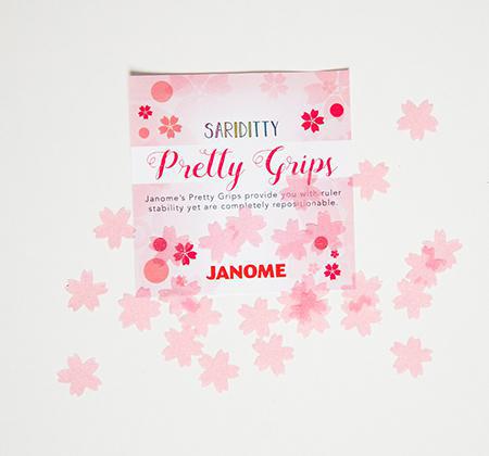 It is important to have right amount of grip when you are doing ruler work! These cherry blossom shaped, glittering decals may be just what you need. Simply stick on to your ruler or template of choice to help you grip your fabric as you work. Easily reposition as required!